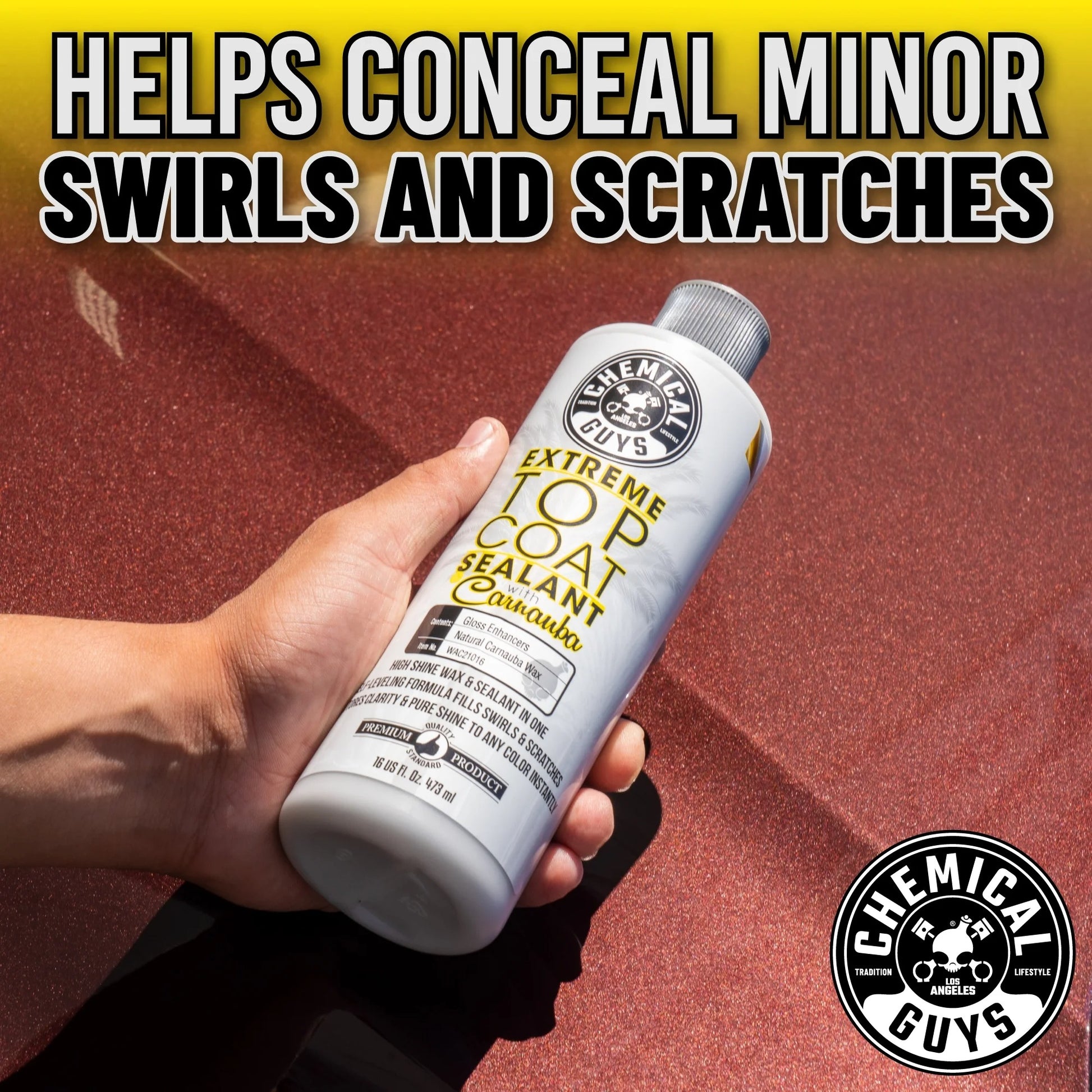 The formula conceals minor imperfections and provides long lasting protection against contamination from road grime, fallout, insect residue, water spots and more. The blend of synthetic sealant and natural wax restores clarity to reflections and creates a deep shine. With enough carnauba to mimic a traditional hand finished wax coat, Extreme Top Coat reduces steps by combining polishing, gloss enhancing, and protection into one easy application.